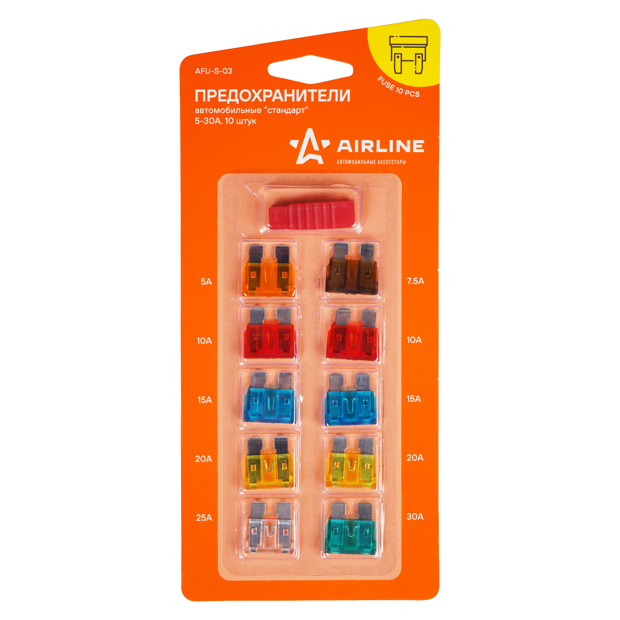 Ekstraktorli blisterli qadoqdagi standart sug‘urta (10 dona, 5–30A) (AFU-S-03)