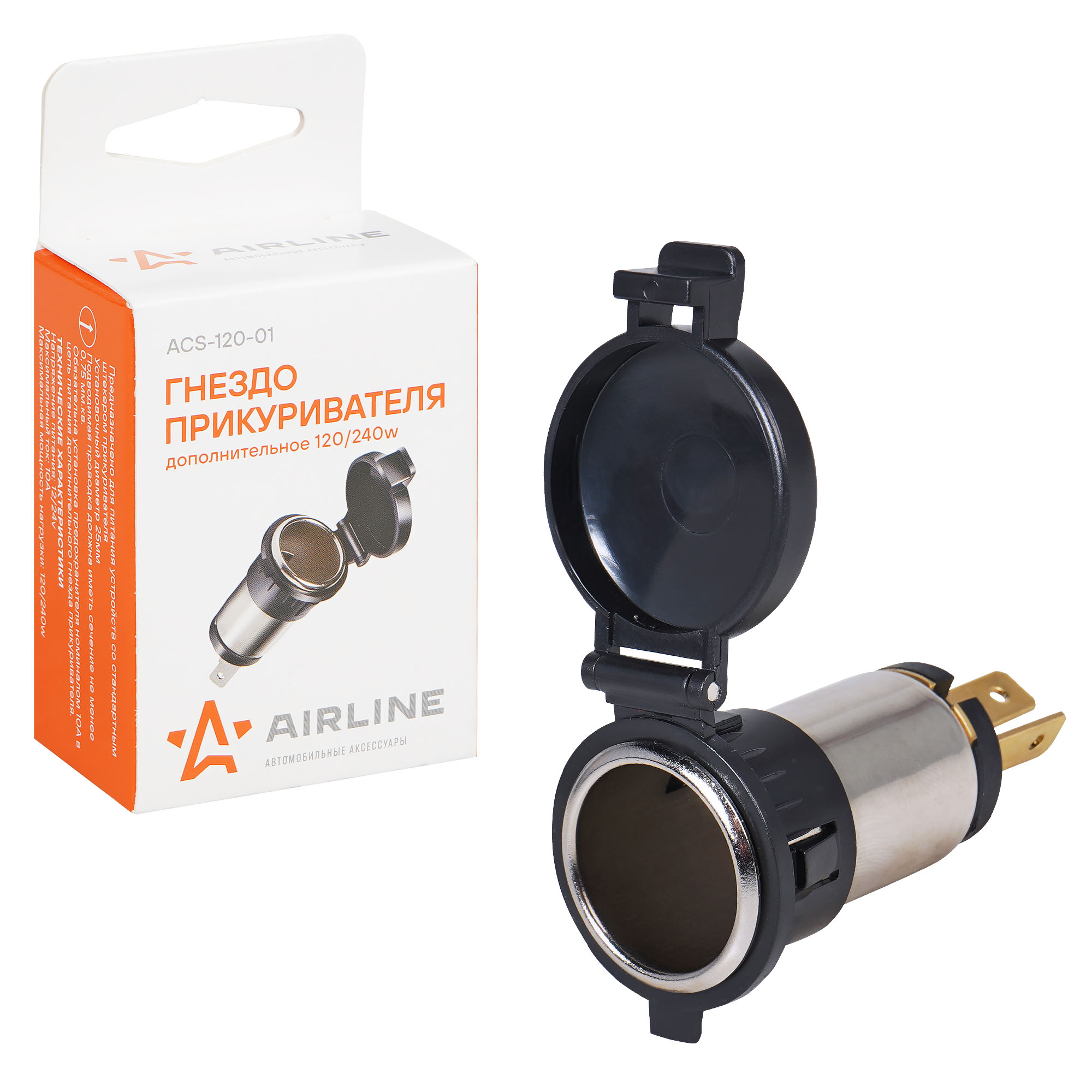 Qo‘shimcha sigaret tutatgich rozetkasi 120 W (12V, 10A), metall (ACS-120-01)