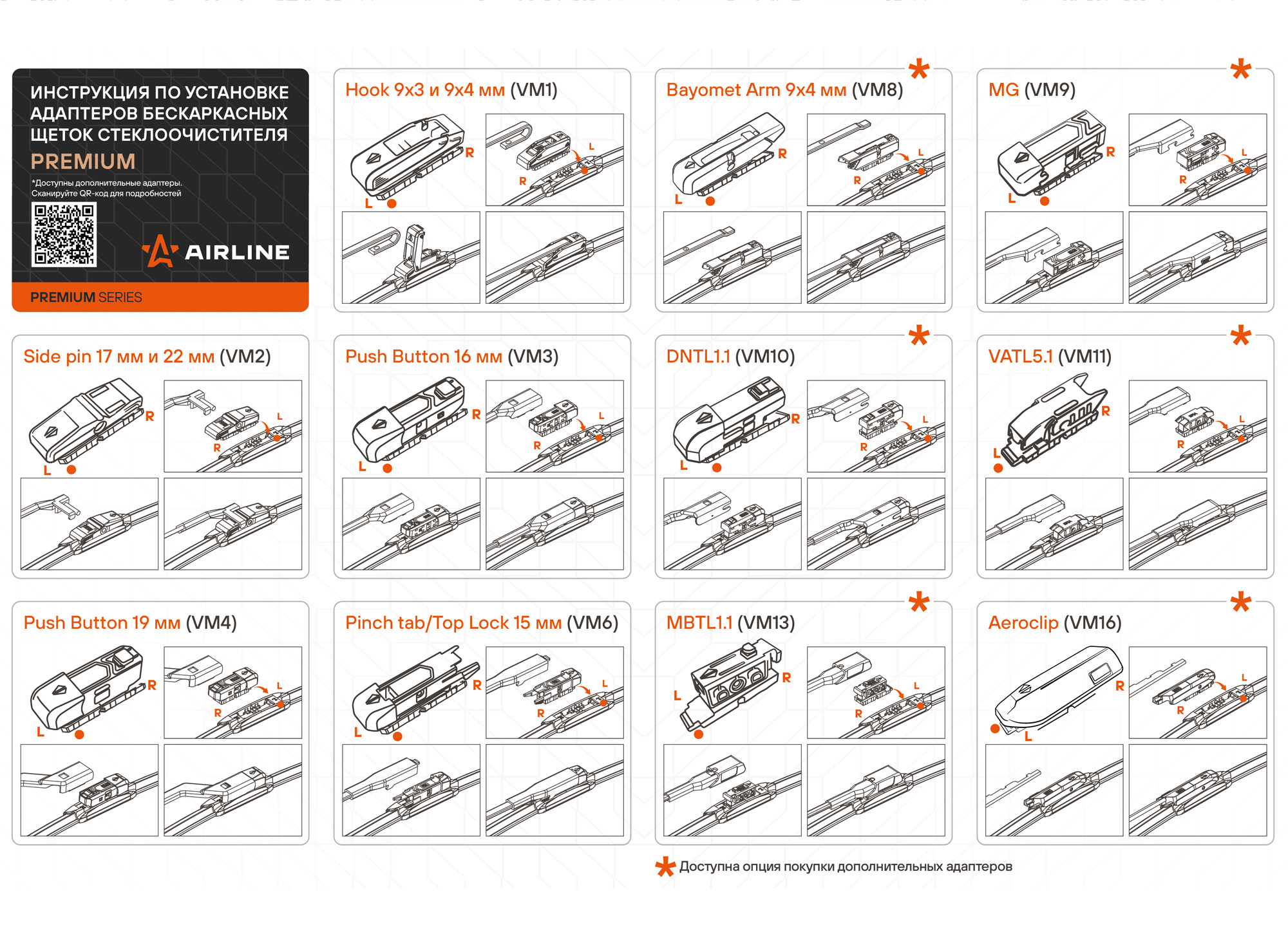 | Adapter for frameless wiper blades PREMIUM "VATL5.1", 2 dona | AWBA04 |