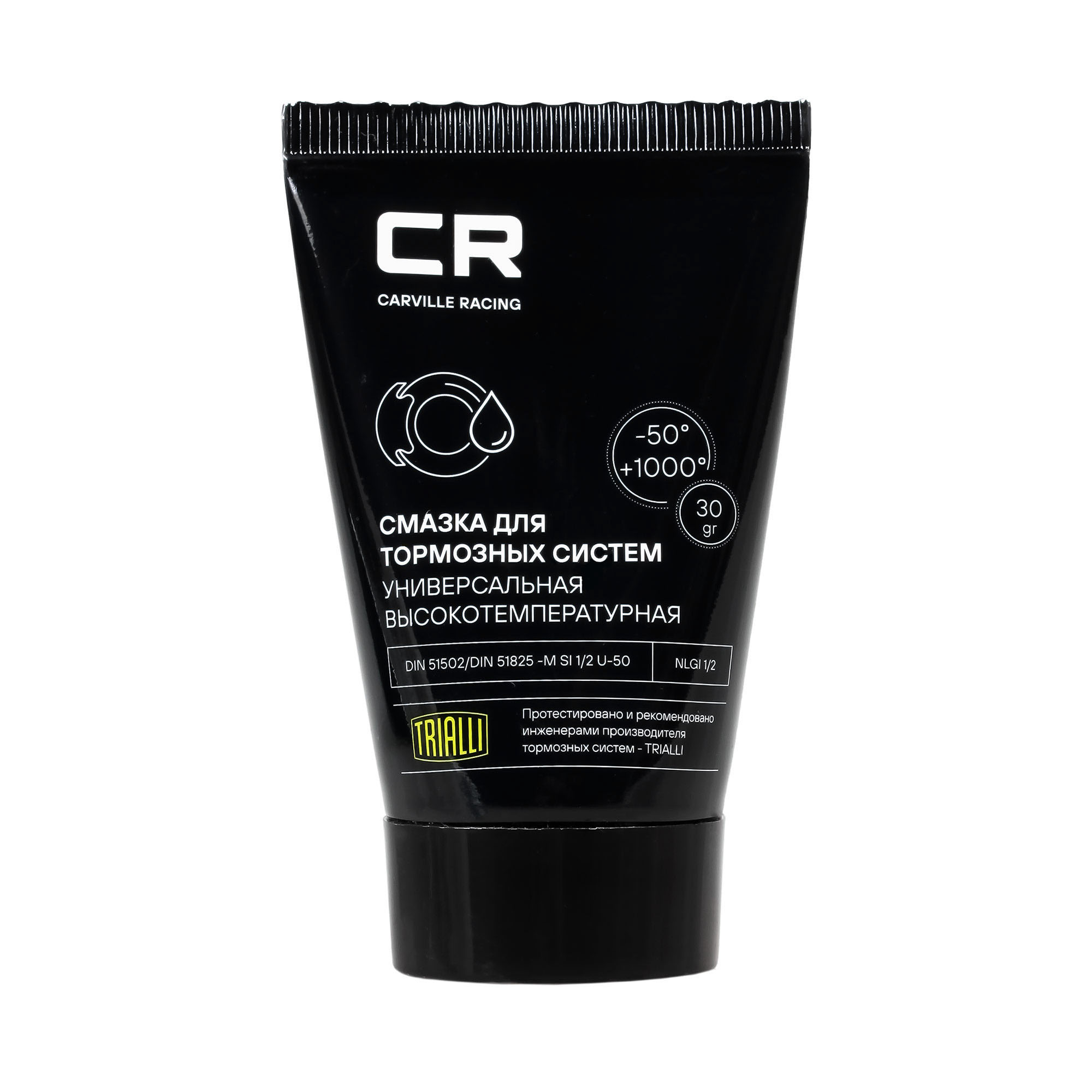 Универсальная высокотемпературная пластичная смазка Carville Racing для тормозных систем. Обладает высокой термоокислительной стабильностью, высокой адгезией к металлам, полностью совместима с элементами из резины. Область применения: тормозные поршни, направляющие тормозного суппорта, нерабочие поверхности тормозных колодок, соединительные элементы выхлопных систем.